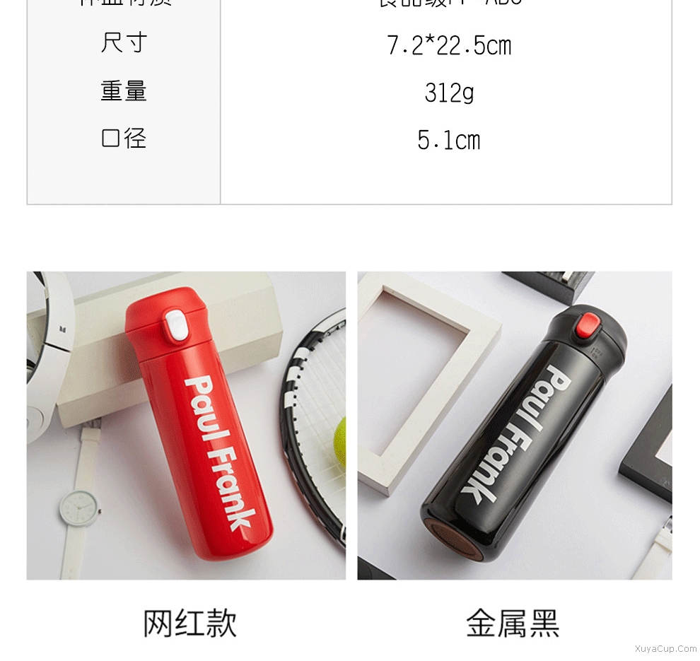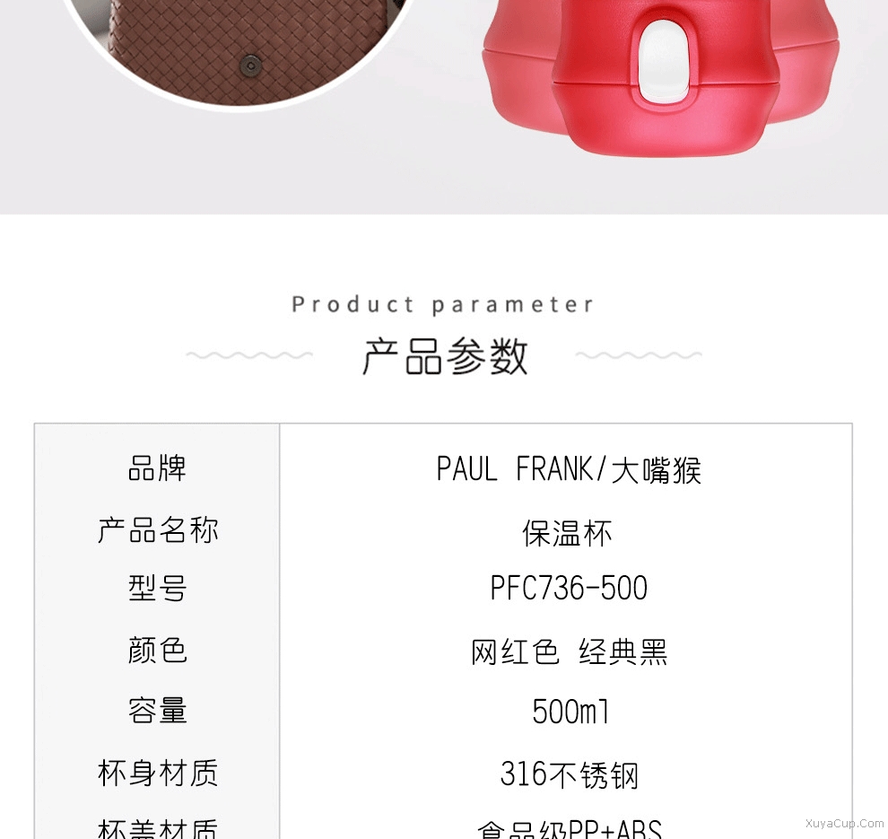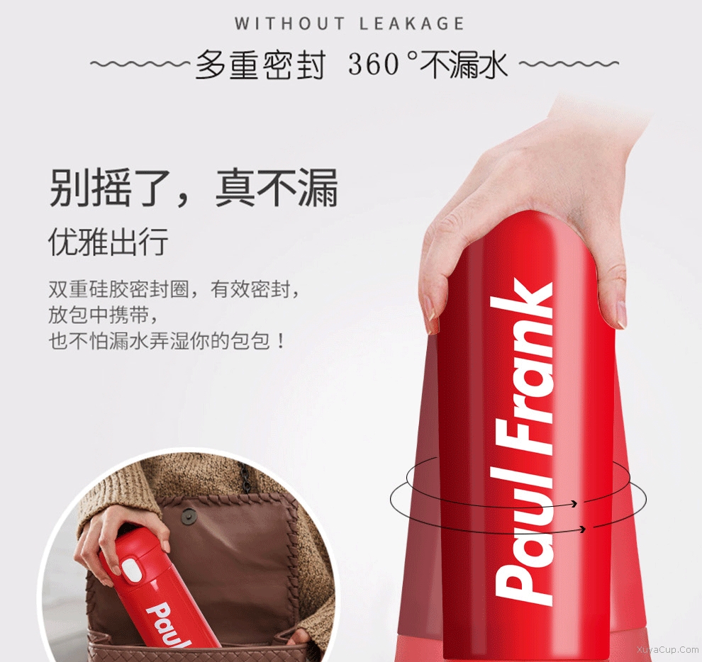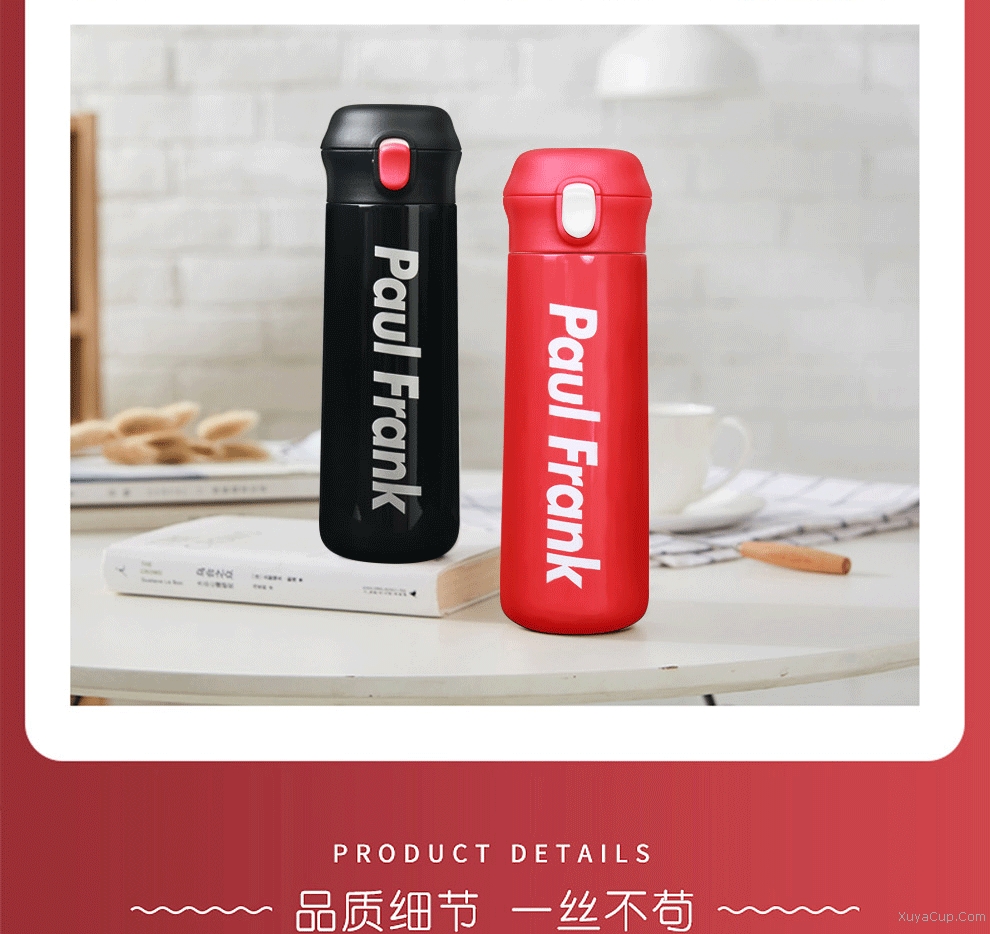 1.一鍵開合,隨心飲用,外加保險鎖扣。 2.PP杯嘴,防燙隨飲,舒適唇感。